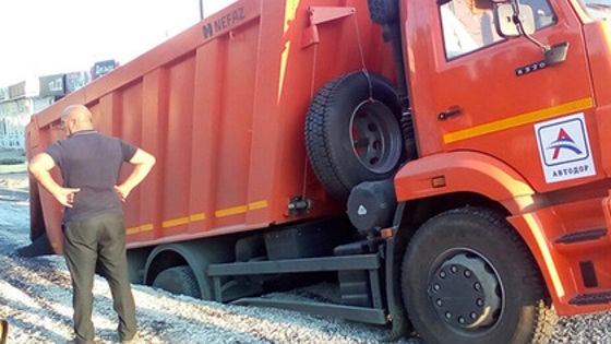 В Ульяновске грузовик с асфальтом въехал в дорожную яму, сообщили РИА Новости во вторник, 26 июня, в энергоснабжающей компании «Т Плюс». Инцидент произошел после того, как дорожники повредили плиту перекрытия канала тепловой сети, срезая старый асфальт. «Дополнительную нагрузку на дорожное полотно создал автомобиль "КамАЗ", груженый асфальтом и направлявшийся к месту проведения дорожных работ, в результате чего автомобиль провалился задней осью в канал», — отметили в компании. Энергетикам пришлось срочно восстанавливать коммунальные сети и они намерены обратиться с претензией к подрядчику, так как он не уведомил их о проведении ремонтных работ. Ранее, 23 июня, сообщалось, что дорожники заасфальтировали яму в Нижнем Новгороде, в которой днем ранее сфотографировались болельщики сборной Хорватии. Интуристы наткнулись на нее во время прогулки после победы их команды над Аргентиной.