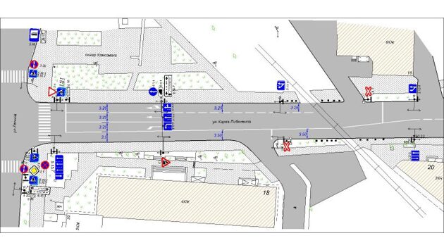 Схема дорожного движения на участке улицы Карла Либкнехта от улицы Веры Андриановой до улицы Ленина в ближайшее время поменяется – в сторону улицы Ленина количество полос будет увеличено до трех. Крайнюю правую получат те автомобили, которые едут прямо и направо, среднюю – те, что едут только прямо. Крайняя левая, соответственно, предназначена для автомобилей, поворачивающих налево. Фото СМЭУКак сообщили в Специализированном монтажно-эксплуатационном управлении, схема движения на этом участке была изменена после того, как поменялись расчетные параметры полос движения. Новые нормативы допускают уменьшение ширины полосы до 3,25 метра. В результате на участке от железнодорожного переезда до улицы Ленина улица Карла Либкнехта стала четырехполосной. Как ожидается, новая схема позволит увеличить пропускную способность перекрестка на 25%.