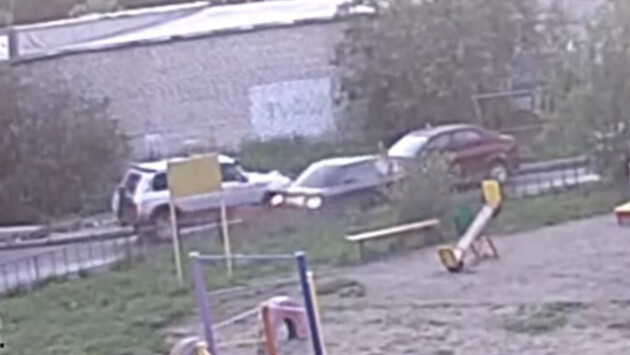 «Ауди 80» протаранила «Рено Логан» в одном из дворов Сегежи (видео)