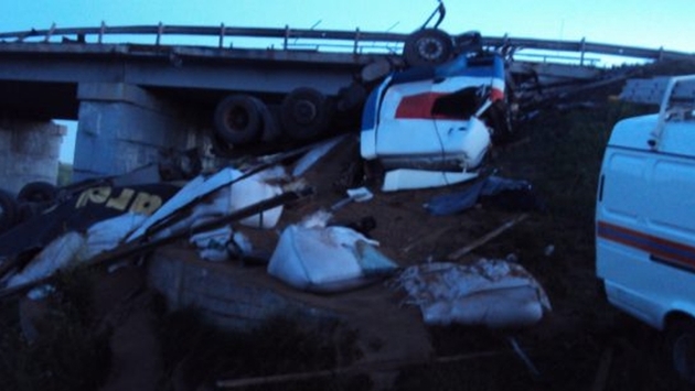 По сообщениям пресс-службы главного управления МЧС России по УР, 30 июня во втором часу ночи в Малопургинском районе Удмуртии, возле деревни Баграш-Бигра, произошло ДТП. Водитель фуры не справился с управлением и вылетел с моста, после чего большегруз перевернулся и упал в реку Агрызка. По сообщениям очевидцев, сам водитель фуры погиб на месте, а его шестилетняя дочь, находящаяся вместе с ним в грузовике, с травмами доставлена в больницу. Специалисты выясняют подробности случившегося; по одной из версий, причиной ДТП мог стать разрыв одной из покрышек.
