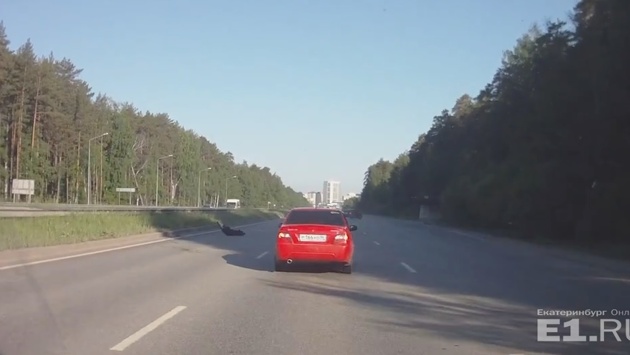 На дублере Сибирского тракта водитель Priora сбил двух кабанов, которые перебегали дорогу. ДТП произошло 30 июня утром и попало на запись регистратора ехавшей следом машины. — Я ехал в сторону Екатеринбурга, меня обогнала Priora, в этот момент кабаны перебегали дорогу, их было трое, первый успел перебежать, а остальные два — нет, Priora их сбила, — рассказал E1.RU очевидец Иван. — Один от удара улетел на правую обочину, он, скорее всего, умер сразу, а второй, который слева остался, еще был жив. Все притормозили, убедились, что человек в Priora не пострадал, поехали дальше. Priora тоже пострадала в этом ДТП — у нее был пробит радиатор. После этого спустя 20 минут кабанов уже убрали с дороги. Водители отмечают, что на этом участке много следов крови на дорогах: видимо, животные часто выбегают из леса и их сбивают.