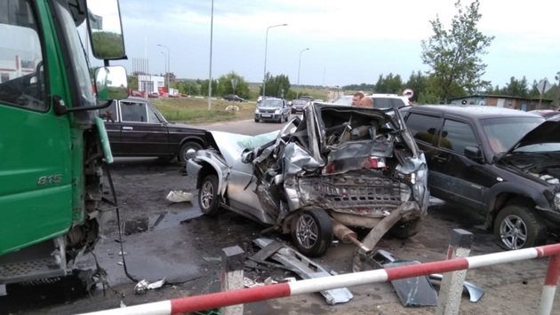 Грузовик смял шесть машин на железнодорожном переезде в Новомосковске. Видео