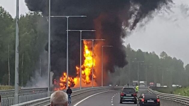 Скоростную магистраль между Москвой и Петербургом перекрыли. Посреди трассы, в Новгородской области горит бензовоз. Об этом сообщил «Интерфакс».