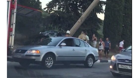 В Алуште иномарка сбила троллейбусную опору: двое в больнице