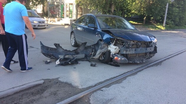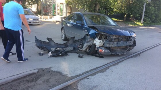 Утром 5 июля в Нвоосибирске на перекрёстке Гурьевской и Тургенева «Мазда» и «Тойота» попали в аварию — из-за этого остановились трамваи.