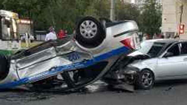 На Рязанском проспекте после столкновения с "Ладой" машина ГИБДД перевернулась на крышу, передает НСН. В результате пострадал мужчина, которого задержали и увезли в отделение полиции. Кто стал виновником столкновения пока неизвестно. Также пока открыт вопрос подлежит ли восстановлению полицейский "Форд".
