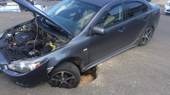 «Конец рулю». Автомобиль попал колесом в яму около «ГАЗа»