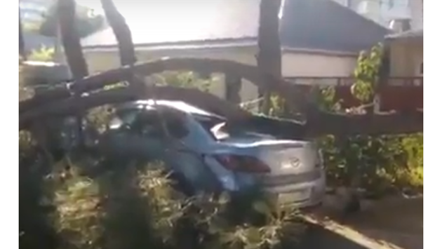 В Анапе тяжелая ветка раздавила автомобиль москвича. Видео