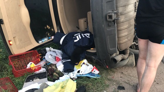 В поселке Коккорево микроавтобус с людьми не вписался в поворрт и перевернулся
