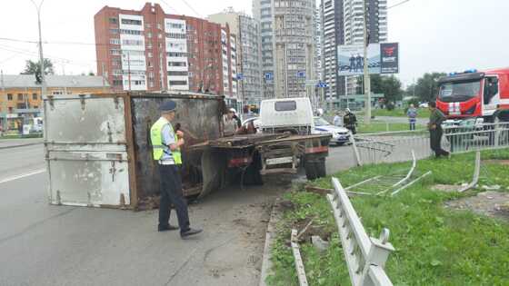 Вот такую картину наблюдали этим утром жители Ботаники: на проезжую часть улицы Крестинского буквально лёг кузов молоковоза. Водитель не справился с управлением в районе пересечения Крестинского и Шварца, машина частично снесла бордюр и дорожное ограждение. При этом упал только кузов, а сам автомобиль остался стоять на проезжей части. По словам очевидцев, на место приехали спасатели — они получили информацию, что водителя зажало в кабине, и готовы были вытаскивать его. Однако мужчина, который был за рулём грузовичка Mitsubishi, смог выбраться сам до приезда МЧС. У него были только ссадины. Кузов грузовика был под завязку заполнен продукцией Ирбитского молокозавода. Водитель загрузился ранним утром и должен был развезти молоко по магазинам Екатеринбурга. Фургоны с продуктами иногда попадают в ДТП: например, месяц назад была авария с фургоном «Реж-хлеб» на Режевском тракте.