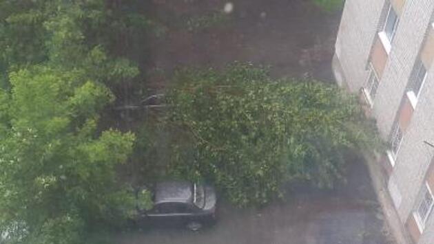 На улице Березовой в Рязани дерево рухнуло на автомобиль