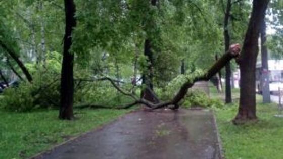 В Перми после сильного ливня на дорогу упали деревья и дорожный столб
