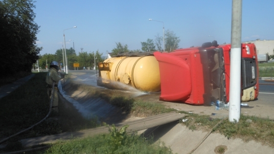 В Чувашии на трассе М7 перевернулась цистерна с соляной кислотой