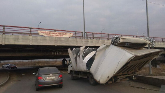Под знаменитым «мостом глупости» в Санкт-Петербурге застряла очередная грузовая «ГАЗель». Нынешняя жертва стала уже 151-й по счёту. Водитель не заметил предупреждающих знаков и сорвал кузов автомобиля. Информация об очередном ДТП появилась в Twitter, который от имени моста ведёт неизвестный активист. Известность к «мосту глупости», расположенному на Софийской улице, пришла в сентябре 2017 года. Своё название он получил из-за того, что под ним регулярно застревают грузовые автомобили, преимущественно марки «ГАЗель». При этом на мосту висит огромный баннер, предупреждающий водителей об опасности, а его границы регулярно покрывают яркой светоотражающей краской.