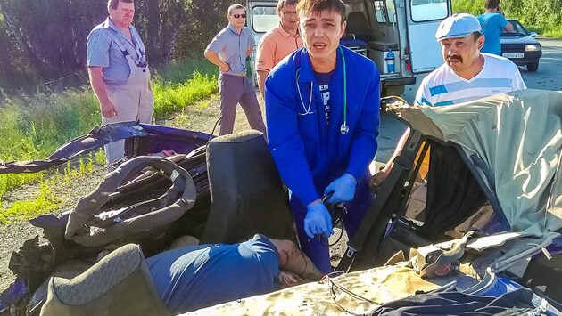 Есть парадоксы, которые можно узнать только от практиков. Врач экстренной медицинской помощи Михаил Андриянов на мой вопрос, что делать с пострадавшими, которые громко кричат, отвечает: — Если человек кричит, ругается, требует его госпитализировать — скорее всего, травмы не слишком серьезные. В первую очередь внимания требуют люди, которые ведут себя тихо: у них может быть очень частое дыхание или очень редкое, они могут быть без сознания. Но главное, если лежат тихо — нужно считать их тяжелыми и указывать на это при звонке в скорую. Идея сделать проект о первой помощи пострадавшим в ДТП витала в воздухе давно. И каждый раз нас останавливал ее масштаб: слишком много вариаций. К тому же в народе популярно мнение, что если вы не медик — к пострадавшим лучше не подходить. И в этом есть зерно истины: например, скоропалительная и неграмотная помощь едва не стоила ноги байкеру из Екатеринбурга, которому очевидцы происшествия хотели перетянуть поврежденное бедро для остановки кровотечения. Принцип «не навреди» универсален, поэтому бездумно кантовать пострадавших в аварии не нужно. И все-таки врачи категорически отвергают мнение, что пассивность очевидцев аварии — лучшая стратегия. Они подчеркивают: первая помощь заключается не в сложных реанимационных мероприятиях. Первая помощь — это набор простейших действий, цель которых — не допустить усугубления ситуации до приезда медиков. Глобальный вопрос мы разбили на несколько мелких, и первый из них звучит так: что сделать на месте ДТП в первую очередь? Убедитесь в безопасности — Помимо первичных травм есть еще вторичные, — рассказывает Михаил Андриянов, который участвовал в спасении сотен пострадавших. — Первичные — от самого ДТП. Вторичные — от возгораний, отравления парами, наезда других машин. Прежде чем кидаться на помощь, нужно оценить риски. Например, если очевидна утечка жидкостей, особенно горючих, регламенты запрещают приближаться к автомобилям даже медикам. Обращайте внимание на маркировку «Опасный груз», задымление, резких запах. — На свой страх и риск, конечно, подходим, но формально сначала место должны обезопасить спасатели, — говорит врач. Понятно, что в критической ситуации хочется помочь как можно скорее, но важно трезво оценить обстановку. Зафиксируйте автомобиль Если приближение к пострадавшей машине безопасно, нужно убедиться, что она стоит на ручнике, затянуть его или подложить под колеса камни. Важно выставить знак аварийной остановки, а если место совсем невидимое — послать опытных людей в обе стороны, чтобы предупредить других водителей. Кстати, в этом случае полезен яркий светоотражающий жилет. Иногда перед местом опасного ДТП выставляют другой транспорт, но обычно не частный, а например, пожарную машину. В первые минуты можно выставить что угодно: оранжевый конус, канистру, пятилитровую бутылку. Если позволяют навыки, можно открыть капот и обесточить машину, скинув клемму аккумулятора. Это снизит риск возгорания от искры. Найдите пострадавших — Обычно они в машине, — говорит наш спикер. — Но непристегнутые часто вылетают из салона, а есть и другой эффект: в состоянии шока серьезно травмированные люди убегают от места аварии на 50–70 метров. Поэтому нужно не просто подойти к автомобилю, а оглядеться вокруг и обнаружить пострадавшего, который лежит в п