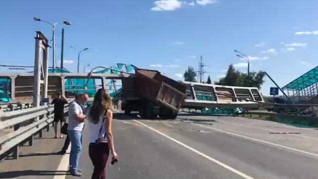 В Пушкинском городском округе Московской области наземный пешеходный мост обрушился после наезда грузовой автомашины. По данным пресс-службы министерства транспорта и дорожной инфраструктуры Московской области, у грузовой автомашины произошло самопроизвольное поднятие кузова. Из-за ЧП движение по Ярославскому шоссе в районе Пушкино заблокировано в обе стороны. Как сообщил РИА Новости представитель Центрального регионального центра МЧС РФ, по предварительным данным, погибших и пострадавших нет. Между тем, по данным очевидцев, пострадавшие в результате обрушения все-таки есть. Известно, что кабина самосвала полностью разрушена. "Интерфаксу" в пресс-службе региональной Госавтоинспекции уточнили, что ЧП случилось в 10:15 в Пушкинском районе на 31-м километре автодороги М8 ("Холмогоры"). Водитель грузовой иномарки совершил наезд на балку надземного пешеходного перехода, в результате чего произошло его обрушение на проезжую часть. Ведутся работы по устранению последствий происшествия. Автомобилистам рекомендуют объезжать аварийный участок по Осташковскому шоссе, а также по улично-дорожной сети городских округов Королев, Пушкино и Ивантеевка.