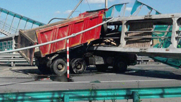 ДТП, в которых грузовики врезаются в надземные пешеходные переходы или мосты, случаются довольно часто. К счастью, последствия редко оказываются трагическими. Одним из ярких примеров стал так называемый «мост глупости» в Санкт-Петербурге, в который на протяжении последних месяцев регулярно врезались «Газели». Так, несмотря на предупреждающую надпись «Газель не проедет», под данным мостом регулярно происходят ДТП из-за слишком высоких автомобилей, которые не могут проехать под преградой: последним пока стал случай от 21 июня — тогда в этом месте застряла 151-я «Газель». Чтобы остановит поток ДТП, дорожники окрасили выпирающую балку, которая и пропарывала кузовы «Газелей», специальной светоотражающей краской — бело-красные полоски теперь видны издалека. Фотографии некоторое время назад опубликовали в твиттер-аккаунте моста с подписью «По свежей краске теперь легко замечать врезавшихся в балку. Пока что следов ударов нет, есть только остатки тех, кто плотно протискивался».