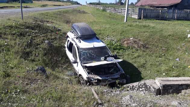 Не справился с управлением и улетел в кювет: на трассе в Башкирии перевернулась «Лада Ларгус»