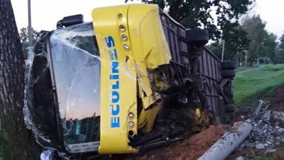 ДТП произошло минувшим утром в Оршанском районе Витебской области. Согласно предварительным данным местного УВД, водитель туристического автобуса, совершавшего рейс Киев — Таллин, заснул за рулем и наехал на световую опору, после чего транспортное средство завалилось на бок и оказалось в кювете.