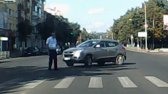 В сети размещены кадры наезда на сотрудника полиции, произошедшего, по утверждению автора видео, вечером в пятницу, 3 августа, в Орле. На записи видно, что водитель, находившийся за рулем кроссовера, совершил левый поворот, пересек полосу встречного движения и сбил незамеченного им регулировщика, стоявшего посреди проезжей части. Пострадал ли правоохранитель в результате инцидента – пока не сообщается.