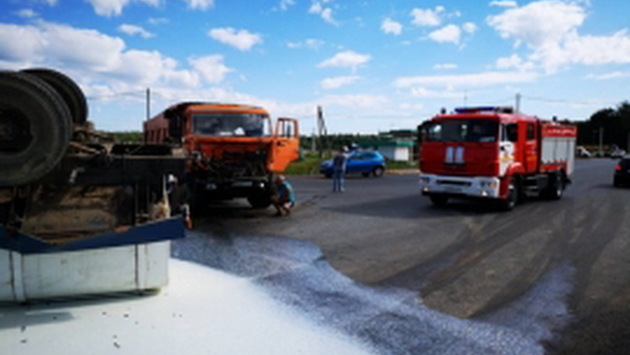 Утром 9 августа в Боровском районе у деревни Кривское столкнулись самосвал КамАЗ и молоковоз ЗиЛ. Молоковоз после столкновения перевернулся и молоко разлилось по проезжей части дороги. Фото пресс-службы Главного управления МЧС России по Калужской области Главное управление МЧС России по Калужской области сообщает о нескольких пострадавших в этом ДТП. Информация уточняется.