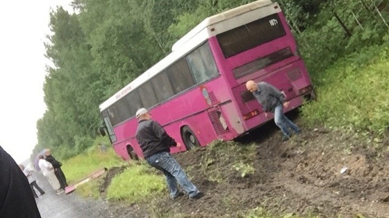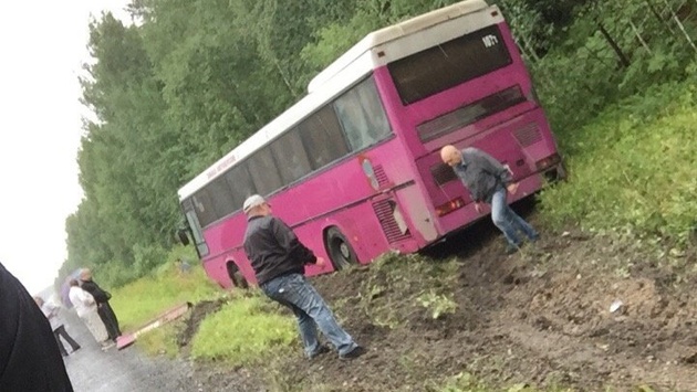 На свердловской трассе легковушка загнала автобус с 40 пассажирами в кювет