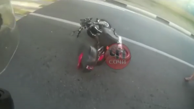 Мотоциклист вылетел из седла после столкновения с авто под мостом в Сочи