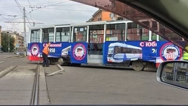 На перекрестке ул. Московская и пр. Красноярский рабочий трамвай №7 сошел с рельсов. Инцидент произошел сегодня, 13 августа. Фото с мечта ЧП опубликовали очевидцы в социальных сетях. На кадрах видно, что электротранспорт скатился с бордюра и практически полностью перегородил проезжую часть. По словам очевидцев, от остановки «Детская библиотека — Нефтебаза» образовалась пробка. Чтобы проехать, автомобилистам приходится делать большую дугу или объезжать участок по прилегающим улицам. «Вот смотрю и понять не могу, как он так умудрился», — удивляются красноярцы в социальных сетях. Как утверждают свидетели дорожно-транспортного происшествия, в трамвае были пассажиры. После ЧП они спокойно вышли из транспорта. В ГИБДД журналистам сообщили, что в ведомство сообщений о сходе трамвая с рельсов не поступало.