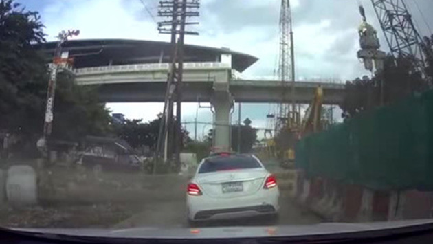 В Таиланде стальная свая упала в сантиметрах от автомобиля. На видеозапись инцидента обратило внимание издание Daily Mail. На ролике стальная конструкция весом в четыре тонны неожиданно срывается с крана и падает прямо перед белым автомобилем марки Mercedes. У машины срабатывает сигнализация, из нее выходит водитель и пассажирка. Женщине становится нехорошо, и мужчина обнимает ее. Какдры сняты на видеорегистратор автомобиля, едущего позади. Позже пассажирку госпитализировали с травмой запястья. Водитель не пострадал, однако оба они находились в шоковом состоянии. В конце июля сообщалось о происшествии, в котором внедорожник провалился в неожиданно возникшую яму глубиной около 4,5 метра. Водитель сумела выбраться из машины, прежде чем ее затопило.