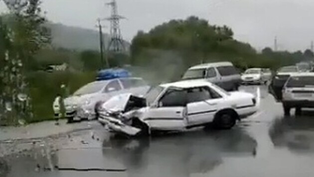 В результате жуткого лобового ДТП в Приморье иномарки превратились в груду металла