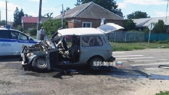 В станице Староминской внедорожник ВАЗ-2121 протаранил грузовик. Видео