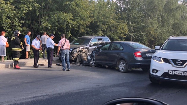 Сотрудники ДПС опросили участников аварии Во вторник, 14 августа, в областной столице произошло ДТП. На улице Народной лоб в лоб столкнулись две иномарки. Очевидцы опубликовали фото в группе ДТП Самара. Водителю легковушки придется менять капот — Skoda столкнулась с внедорожником Toyota. У легковушки сильно деформировались капот и переднее крыло, — сообщили автомобилисты. В результате столкновения японский автомобиль лишился крыла На месте ДТП работали сотрудники МЧС и полицейские. Из-за аварии на дороге образовалась небольшая пробка.