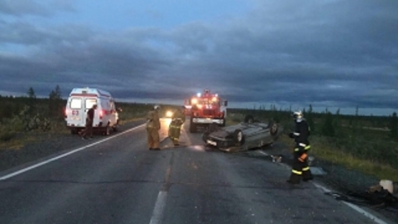 На автодороге Лабытнанги - Харп перевернулась легковушка