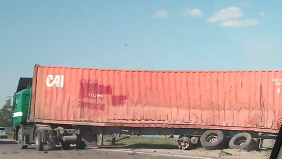 В Краснодарском крае вчера, 16 августа, произошла авария с участием шести автомобилей — двух легковушек и четырех грузовиков. ДТП случилось между Тимашевском и станицей Брюховецкой, когда с груженого КамАЗа слетел огромный тент. Он упал на кабину следовавшего во встречном направлении МАЗа, и по этой причине его водитель потерял управление и съехал со своей полосы. МАЗ врезался в контейнеровоз MAN, затем в мусоровоз КамАЗ, а также крепко зацепил два легковых автомобиля Hyundai. В результате аварии погиб один человек. Еще двое были госпитализированы. КамАЗ, с которого слетел тент, не получил ни царапины.