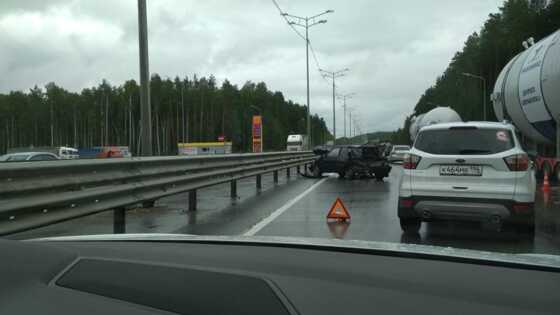 На Пермском тракте возле стелы «Европа — Азия» автопоезд с адсорберами для Газпрома задержала авария. Водитель ВАЗ-2114 по касательной задел «бочку» — и его отбросило на отбойник. Рядом с автопоездом лежат осколки кузова автомобиля. Проезжающие мимо водители сообщают, что пострадавших в аварии нет — визуальные повреждения хорошо заметны только у легковушки. Автопоезд остановился на месте аварии, как и пострадавшая машина. — В сторону Екатеринбурга собирается пробка, — сообщают очевидцы. Гигантские бочки на обочине. Припаркованы. Такое ощущение, что битую машину порезали, — сообщают очевидцы.