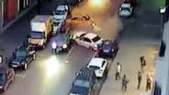 МОСКВА, 20 авг — РИА Новости. Телеканал РЕН ТВ опубликовал запись с камер видеонаблюдения, на которой запечатлен момент аварии с восемью автомобилями на Большой Татарской улице в Москве. На кадрах видно, как Mercedes на большой скорости врезается в такси, а затем обе машины таранят шесть припаркованных автомобилей. Прохожие бросаются врассыпную. Пострадали два человека. По данным источника РИА Новости в правоохранительных органах, иномарка столкнулась с такси во время обгона.