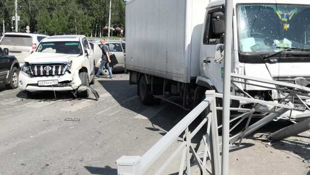 Днём 20 августа на перекрёстке улиц Бориса Богаткова и Кирова в Октябрьском районе Новосибирска столкнулись грузовик и Land Cruiser — после столкновения грузовик снёс светофор и металлическое ограждение на перекрёстке. Авария случилась около 13:00 недалеко от остановки «ГПНТБ». «Не разъехались грузовик и Toyota Land Cruiser. Также пострадал внедорожник Peugeot. Снесли светофор, пострадавших нет. В "Тойоте" сработали подушки безопасности», — коротко описали ситуацию в службе аварийных комиссаров «Альянс». В Специализированном монтажно-эксплуатационном учреждении сообщили, что пока никакой информации о снесённом светофоре не поступало. «Сейчас вышлем бригаду», — прокомментировали в СМЭУ. Согласно сервису Яндекс.Пробки, сейчас на перекрёстке собралась значительная пробка. Скорость движения автомобилей в потоке не превышает 7 километров в час. 16 мая в Новосибирске на одном из перекрёстков с проспектом Дзержинского автомобиль Toyota Camry снёс светофор: с места аварии скорая увезла троих пострадавших.