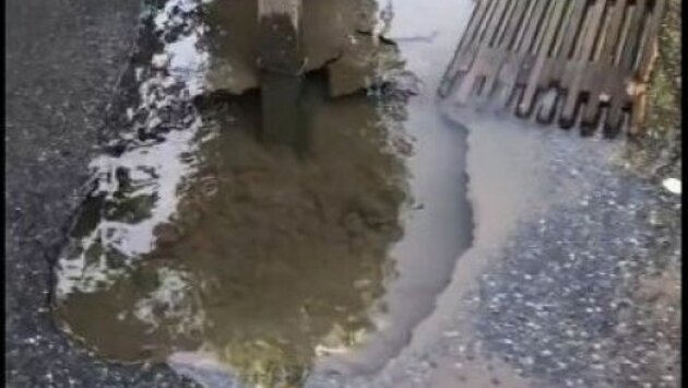 Из-за коммунальной аварии на 2-ой Дачной в асфальте образовалась промоина