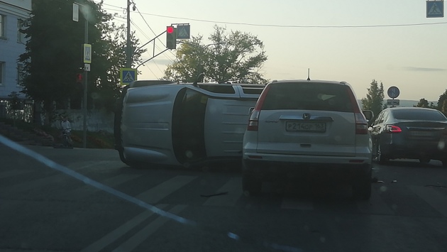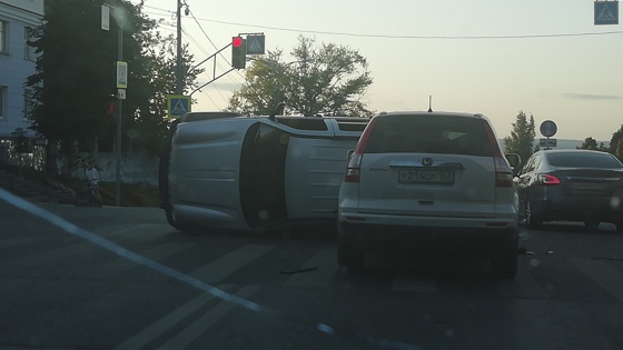 Около цирка на Молодогвардейской «Сузуки» и «Хонда» завалили на бок внедорожник