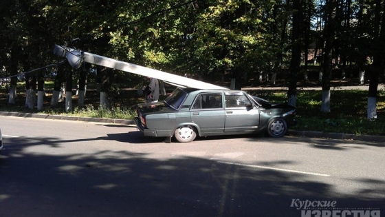 Курск. На проспекте Победы «Ваз» снес опору фонаря