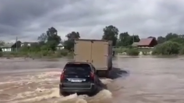 В Приморье грузовик взял на буксир внедорожник. Вместе они «проплыли» реку