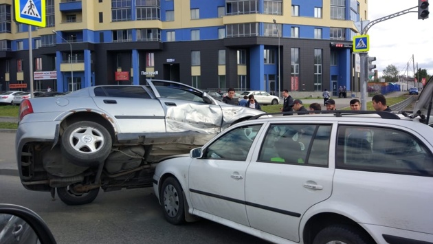 В Екатеринбурге на улице Репина произошла авария — столкнулись две легковушки. Одна машина почти перевернула другую, и они так и остались стоять после столкновения. — Skoda ехала перед нами — от «Радуга-парка» в сторону Центрального стадиона на зелёный сигнал. Opel ехал в сторону «Радуга-парка» и повернул налево, к 41-й больнице. Хотел проскочить, — рассказал Е1.RU очевидец. Е1.RU запросил информацию в ГИБДД: там сообщили, что авария без пострадавших, а экипаж ДПС сейчас помогает водителям. Неделю назад при столкновении машин «на ребро» встала другая легковушка. Это произошло на свежеотремонтированном участке дороги на Уралмаше.