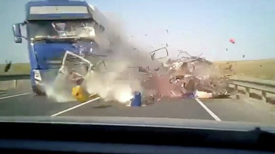 МОСКВА, 3 сен — РИА Новости. В социальной сети "Вконтакте" опубликовано видео, запечатлевшее момент ДТП на трассе М-5 "Урал" в Самарской области. Авария с участием грузовика и трех легковых автомобилей произошло 1 сентября. В результате столкновения погибли пять человек. Как пишут местные СМИ, Toyota, выехавшая на встречную полосу, врезалась в грузовик Volvo, после чего врезалась в попутную машину. Большегруз же перевернулся на бок и столкнулся с внедорожником Mitsubishi с прицепом.