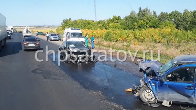 Сегодня на трассе в Саратовском районе рядом с селом Еремеевка столкнулись три автомобиля. Семь человек получили травмы, одни из них - ребёнок в возрасте 11 лет. Три человека находятся в тяжёлом состоянии. Люди не могли самостоятельно выбраться из салона авто наружу. По прибытию из помятых машин их вызволили спасатели. Медики госпитализировали пострадавних в больницу. Об этом сообщает портал ЧП-Саратов. По предварительной информации, 57-летний мужчина за рулём автомобиля "Mazda" двигался в сторону Волгограда. В один момент он не справился с управлением, выехал на встречную полосу и врезался в машины "LADA Kalina" и "ВАЗ-2106". Транспортные средства получили серьёзные повреждения лобовых частей. В настоящее время дорожные инспекторы устанавливают все прочие обстоятельства случившегося. Напомним, недавно ещё одно страшное ДТП произошло около села Михайловка. Травмы получили также семь человек, в том числа три ребёнка. Позже водитель одного из автомобилей скончался в больнице.