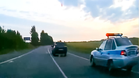Знаете, как выглядят погони за нарушителями в США? Машины бортуются, копы стреляют по нарушителям, сверху парит полицейский вертолет. А теперь забудьте все это. Вот как выглядит суровая российская погоня за ВАЗ "Девяткой" в одном из регионов России. Нарушитель уходит на высокой скорости от полицейских, постоянно выезжая на встречную полосу. Один из автомобилей ДПС, попытавшись обойти гонщиков сбоку, поплатился за это и улетел в кювет. Вторая машина продолжала погоню через проселочные дороги и была повреждена: преступник ударил ее задним ходом. Судя по видео, была даже стрельба: сотрудники ДПС стреляли по колесам. Однако тщетно - нарушитель все же ушел. Теперь его разыскивают и, вероятно, это будет делать несложно, поскольку номера попали на видеорегистратор. Но все-таки с такой поимкой преступников далеко не уедешь.