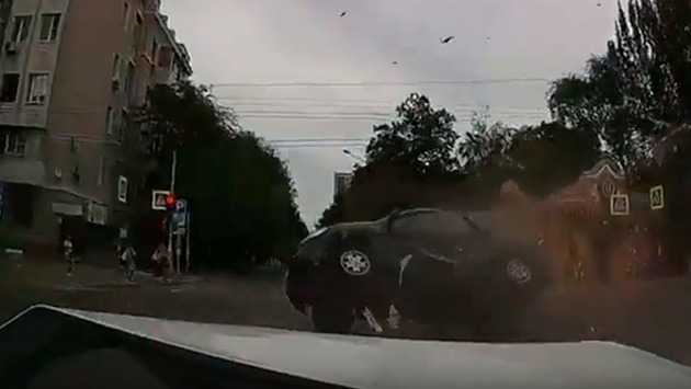 В аварии с пятью траспспортными средствами в Ростове пострадали трое человек. В субботу, восьмого сентября в Ростове-на-Дону произошла серьезная авария. На кадрах, опубликованных видеорегистратором, установленным в одной из машин, видно, как водитель начал движение на красный свет. На перекрестке он столкнулся с автомобилем марки SsangYong. Протараненная машина несколько раз перевернулась и вылетела на тротуар, задев сразу три припаркованных автомобиля марок Renault, Hyundai и Subaru. В результате инцидента пострадал один пешеход, собиравшийся переходить дорогу по зебре, и двое находившихся в SsangYong. Также был снесен знак дорожного движение. Все пострадавшие были доставлены в медицинское учреждение.