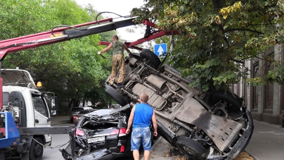 Кувыркающийся после ДТП автомобиль сбил человека в Ростове. Видео