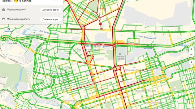 В Ростове-на-Дону сегодня, 12 сентября, образовалась 4-километровая пробка. Автомобили не могут проехать с Северного жилого массива в центр города по проспекту Михаила Нагибина, через площадь Гагарина, а также по проспекту Ворошиловскому. Согласно данным сервиса «Яндекс.Пробки», скорость движения на данных участках по состоянию на 10:25 не превышает 3 км/ч. Пробка растянулась от улицы Нариманова до площади Гагарина, в обратном направлении автомобили стоят до нее от улицы Станиславского. На дорожную ситуацию повлияло сразу несколько факторов. Во-первых, полностью закрыто движение на южной части улицы Нансена в районе проспекта Михаила Нагибина в связи с проведением ремонта. Во-вторых, в переулке Ашхабадском работает спасательная служба «Газпрома» и движение по этому участку дорожной сети также временно запрещено. Также дорожные затруднения наблюдаются на улице Красноармейской – от переулка Крепостного до переулка Газетного.