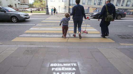 Перед переходами наносились надписи «Возьмите ребёнка за руку», «Посмотрите по сторонам» и «Снимите наушники». Сотрудники Центра организации дорожного движения признали эксперимент удавшимся и решили продолжить такую практику.