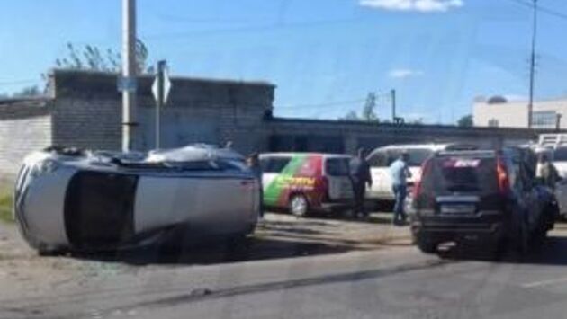 В Приморье в ходе жёсткого ДТП машина завалилась набок.